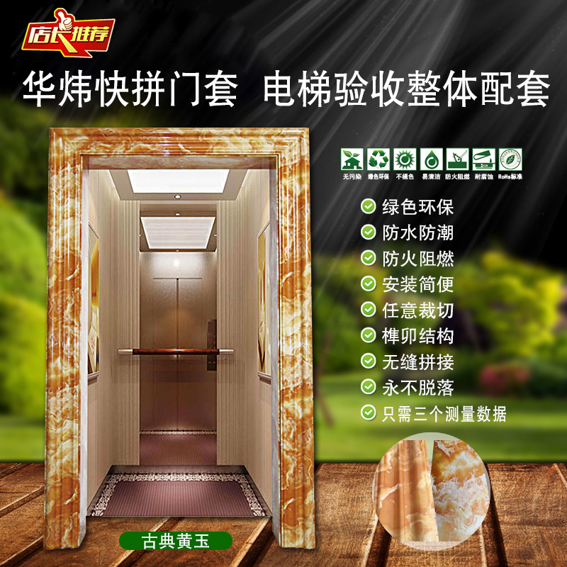 電梯環(huán)?!翱煅b”門套,是繼電梯無線五方對講系統(tǒng)后的又一創(chuàng)新性的電梯配套產(chǎn)品,電梯快裝門套綠色環(huán)保、防水防潮、防火阻燃、榫卯結(jié)構(gòu)、任意切割、無縫快拼、絕不脫落。